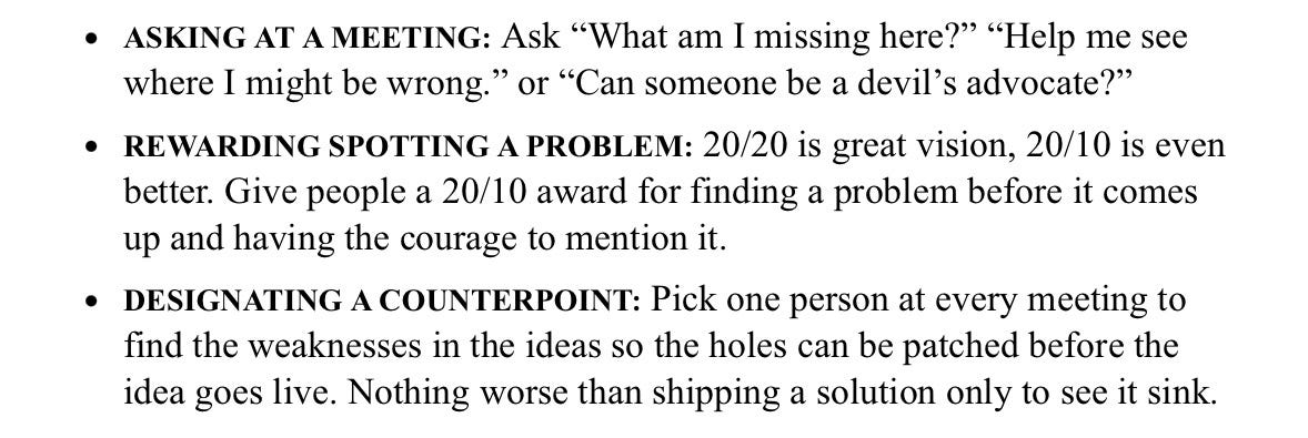 Donāt count on your vendors or suppliers, and for sure donāt count on yourself. If you want to be confronted with the truth, with reality as it is ā and not as it is in your head ā youāre going to need to build a team. And youāre going to need to learn not just how to make it work well, but how it can outperform the smartest members of the individual team.